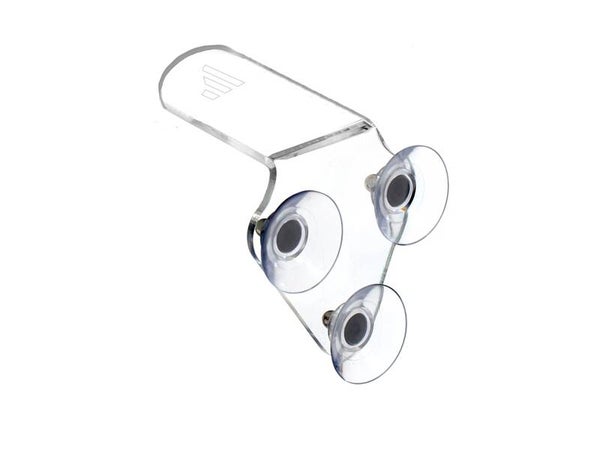 The stand includes 3 suction cups and 3 nuts for mounting. You can also choose to screw the holder onto a surface.